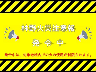 ※林野火災警報は、「火の使用制限」に違反した者に対して30万円以下の罰金又は拘留に処することが消防法で定められています。 ※林野火災注意報は、「火の使用制限」に従うよう努めなければなりません。 ※林野火災警報及び注意報が発令されている間は、居住地等に関係なくすべての方に対し、火の使用制限が適用されます。 【制限される行為】 ①山林、原野等において火入れをしないこと。 ②屋外において、花火(がん具用を含む。)を行わないこと。 ③屋外において、火遊び又はたき火をしないこと。 ④屋外において、爆発しやすい物や落ち葉などの燃えやすい物の近くで喫煙をしないこと。 ⑤山林、原野等の場所で、火災が発生するおそれが大であると認めて指定した区域内において喫煙しないこと。 ⑥屋外において、残火(たばこの吸殻を含む。)、取灰又は火粉は、火が確実に消えていることを確認し、処理すること。 ※伝統行事や地域行事であっても、どんど焼き等の裸火で火の粉が飛散する行為は制限対象となります。 |