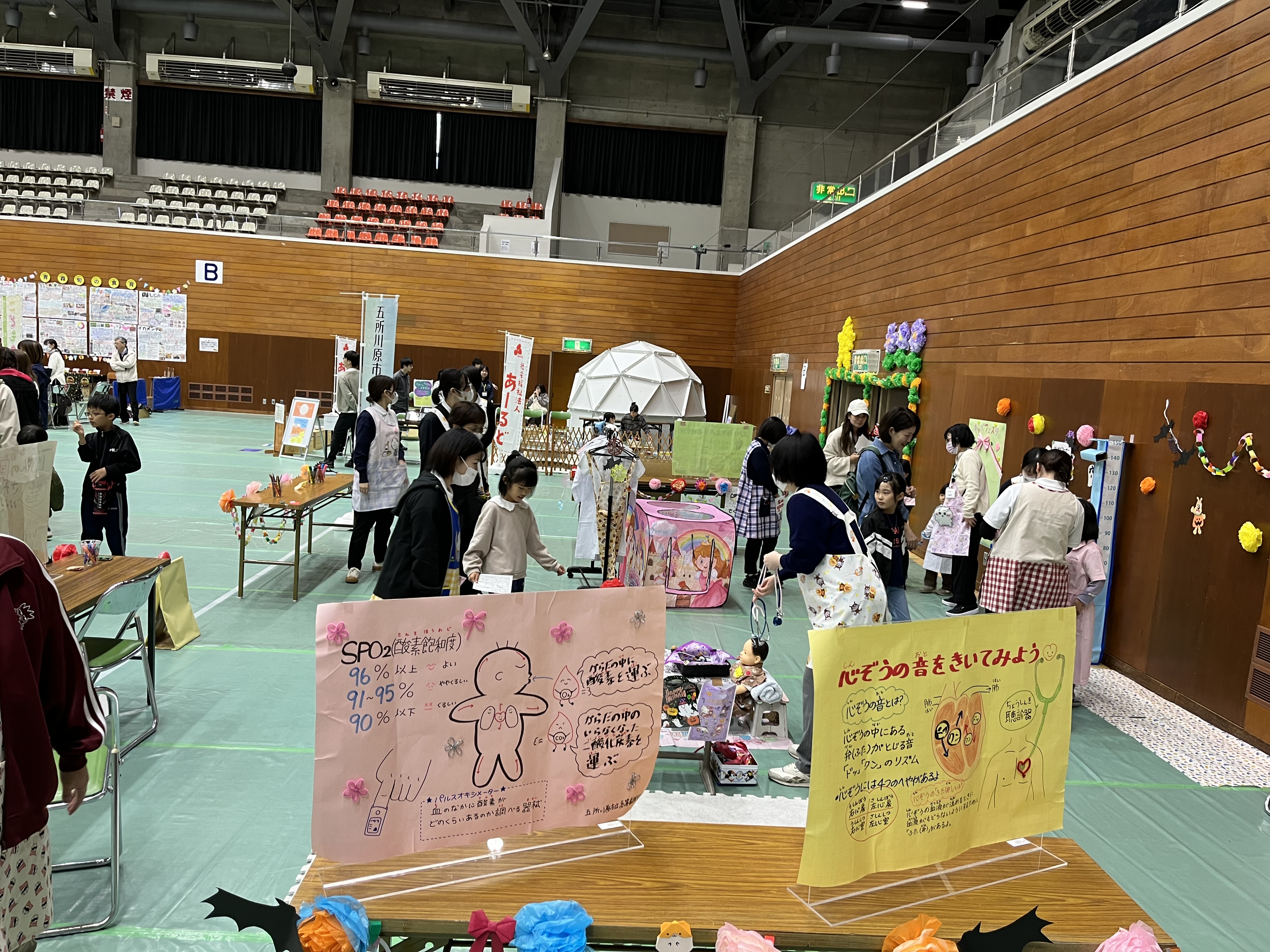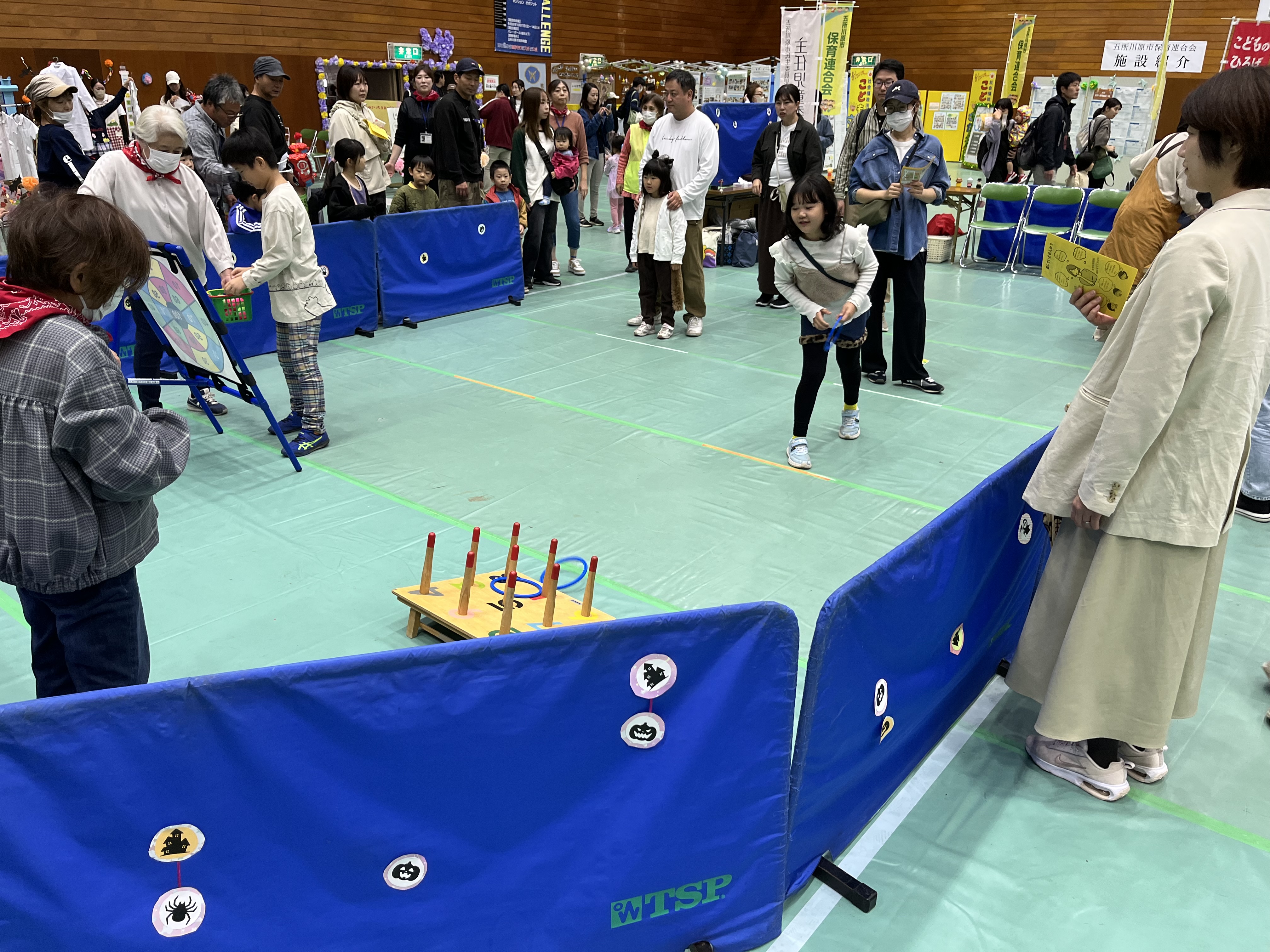 ・子供向けのヨーヨー釣りや輪投げを準備。親御さん向けに血管年齢測定、ベジチェックを行います!
