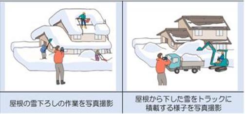 ※降雪による被害については、屋根雪などの除雪前、除雪中、除雪後の写真撮影をお願いします。
