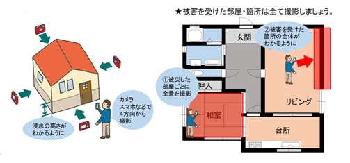 市町村から罹災証明書を取得して支援を受ける際や、保険会社に損害保険を請求する際などに、たいへん役に立ちます。