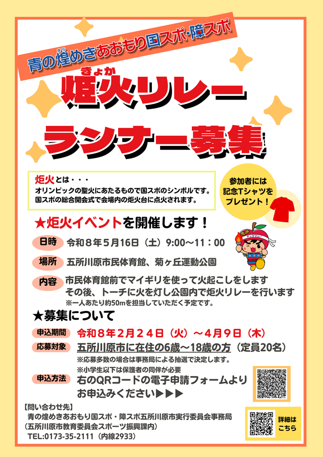 青の煌めきあおもり国スポ・障スポ五所川原市実行委員会では、大会成功を祈念し炬火イベントを実施します。