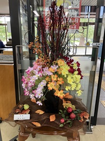 図書館の近所でフラワーアレンジメントのお店をやっている垂石様から、季節に合わせて提供していただいています。